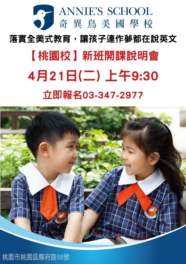 桃園平安校 提供的教育服務課程 地址: 330桃園市桃園區縣府路98號電話: (03)347-2977電郵: taoyuan@annies.school Contact With Taoyuan Branch Contact Us - Taoyuan請問您填寫此表單的主要目的? 參加 4/21上午9:30說明會 一般留言/孩子已在桃園平安校就讀 一般留言/尚未就讀Your Name 您的名字Email Address 電子郵箱Your Mobile 手機號碼Student Information 孩子基本資料Chinese Name 中文姓名English Name 英文名字Gender 性別Male 男Female 女Date of Birth 生日(西元 年/月/日)Current Class 目前就讀班級名稱(其中之一)Current Grade 目前就讀年級(年紀) 2-3歲/幼幼班 3-4歲/小班 4-5歲/中班 5-6歲/大班 一年級 二年級 三年級 四年級 五年級 六年級 其他Which Department Are You Interested in? 哪方面的課程有興趣?(可複選) Kindergarten 幼兒園 English Department 兒童美語 Elementary Subjects 國小安親課輔 Art Classes for Children 才藝課程Comment or Message 留言內容Send Message