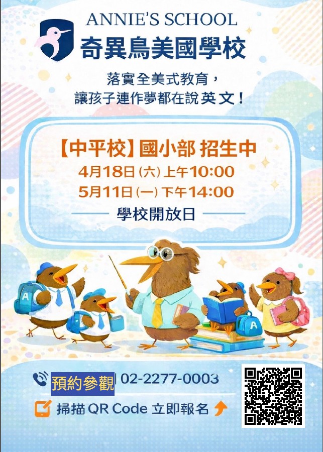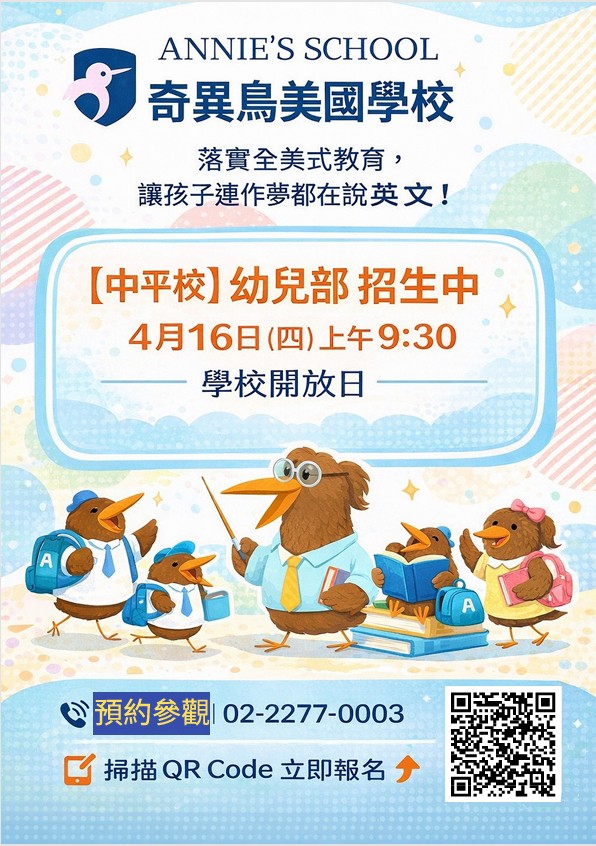 新莊中平校 提供的教育服務課程 地址: 242新北市新莊區中平路108號3、4樓電話: (02)2277-0003傳真: (02)2277-0021電郵: zhongping@annies.school Contact With Zhongping Branch Contact Us - Zhongping請問您填寫此表單的主要目的? 想參加新莊中平校的說明會/預約參觀/申請報名 一般留言/孩子已在新莊中平校就讀 一般留言/尚未就讀Your Name 您的名字Email Address 電子郵箱Your Mobile 手機號碼Student Information 孩子基本資料Chinese Name 中文姓名English Name 英文名字Gender 性別Male 男Female 女Date of Birth 生日(西元 年/月/日)Current Class 目前就讀班級名稱(其中之一)Current Grade 目前就讀年級(年紀) 2-3歲/幼幼班 3-4歲/小班 4-5歲/中班 5-6歲/大班 一年級 二年級 三年級 四年級 五年級 六年級 七年級 八年級 九年級 其他Which Department Are You Interested in? 哪方面的課程有興趣? Kindergarten 幼兒園 English Department 兒童美語 Elementary Subjects 國小安親課輔 Art Classes for Children 才藝課程 High School Subjects 國高中課程Comment or Message 留言內容Send Message